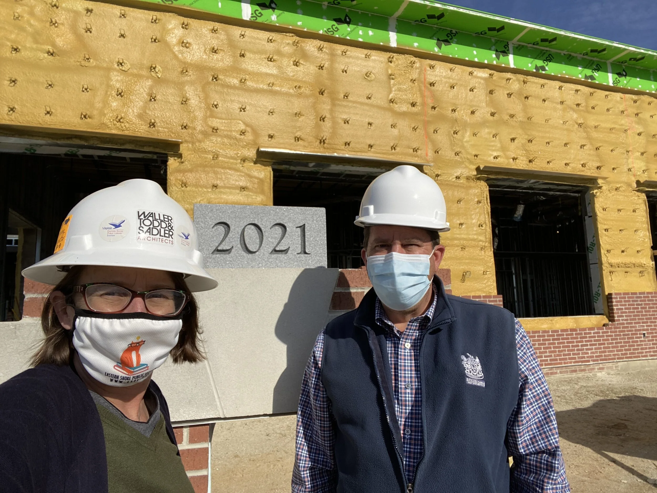 (ACCOMAC, VIRGINIA) December 31, 2020 – Eastern Shore Public Library’s new regional library and Eastern Shore of Virginia Heritage Center recently received a donation of the cornerstone to be installed on the new building, now under construction in Parksley, Virginia. The cornerstone was donated by Williams Funeral Homes in Parksley and Onancock. The library’s cornerstone is inscribed with “2021,” to commemorate the completion of the new library.